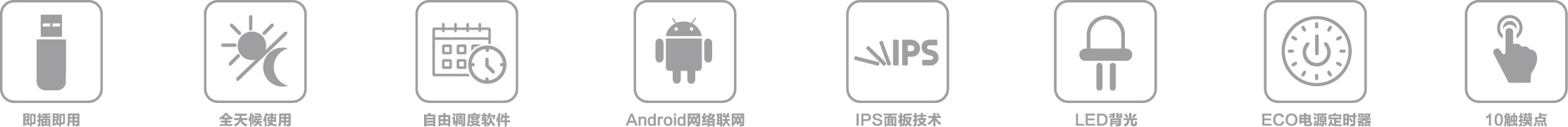 超薄機(jī)身;質(zhì)感拉絲金屬;高清畫質(zhì);觸摸極速反應(yīng);智能分屏;智能遠(yuǎn)程信息發(fā)布;可定時(shí)開(kāi)關(guān)機(jī);提前設(shè)定節(jié)目源;鋼化玻璃屏幕;可定制專屬LOGO、多種顏色、尺寸可選。